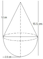 3. A toy is in the form of a cone of radius 3.5 cm mounted on a hemisphere of the same radius. The total height of the toy is 15.5 cm. Find the total surface area of the toy.
