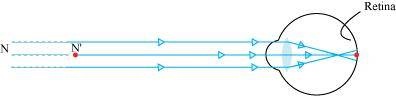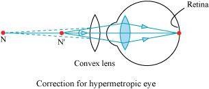 The rays starting from the normal ear point N' converge on passing through the convex lens, and appear to come from N, the near point of the hypermetropic eye.