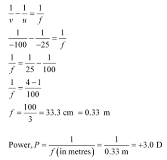 Q.9 A person needs a lens of power -5.5 dioptres for correcting his distant vision. For correcting his near vision he needs a lens of power +1.5 dioptre. What is the focal length of the lens required for correcting (i) distant vision, and (ii) near vision?