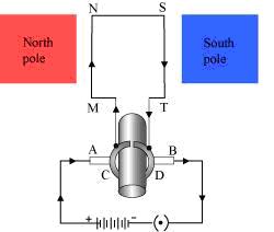 Ans: An electric motor is a device that converts electrical energy to mechanical energy. It works on the principle of magnetic effect of current. The figure listed below shows a simple electric motor.