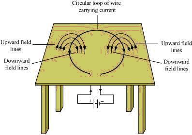 Q.5 Consider a circular loop of wire lying in the plane of the table. Let the current pass through the loop clockwise. Apply the right-hand rule to find out the direction of the magnetic field inside and outside the loop.